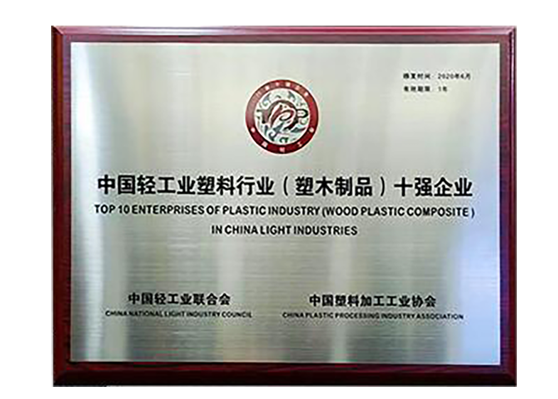 中國輕工業(yè)塑料行業(yè)(塑木制品)十強企業(yè)